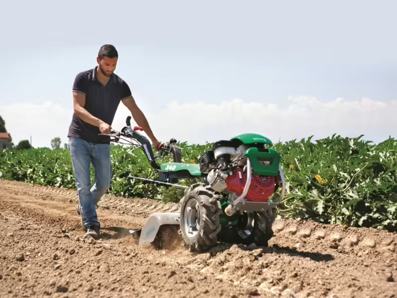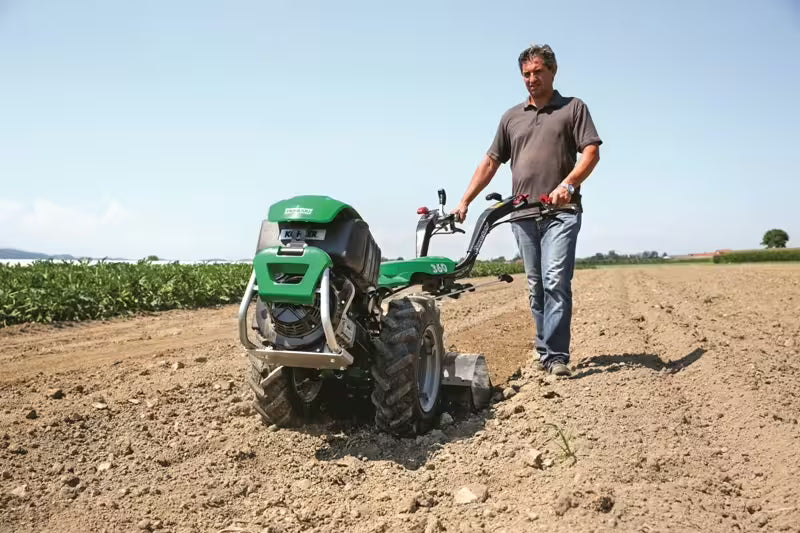 Perfekte Ergonomie für jede Fläche. Ein Highlight beim Ferrari Einachser ist der 180° drehbare Lenker, der sich nicht nur der Fahrtrichtung anpassen, sondern auch in der Höhe und seitlich verstellen lässt. So passt sich die Maschine deinem Fahrerplatz und Arbeitsstil an – nicht umgekehrt. Besonders in engen Rebzeilen oder zwischen Obstbäumen ermöglicht das eine präzise Führung mit minimalem Kraftaufwand. Kombinierst du den Einachser z. B. mit der Ferrari Bodenfräse bekommst du eine Maschine, die sich selbst in schwierigem Gelände leicht manövrieren lässt. Die schnelle Umschaltung der Fahrtrichtung unterstützt dich zusätzlich, wenn du auf engem Raum oder mit häufigen Wendungen arbeitest. Für professionelle Anwender:innen, die in Weinbergen, Obstplantagen oder auf Brachflächen unterwegs sind, ist das ein echter Produktivitätsbooster.