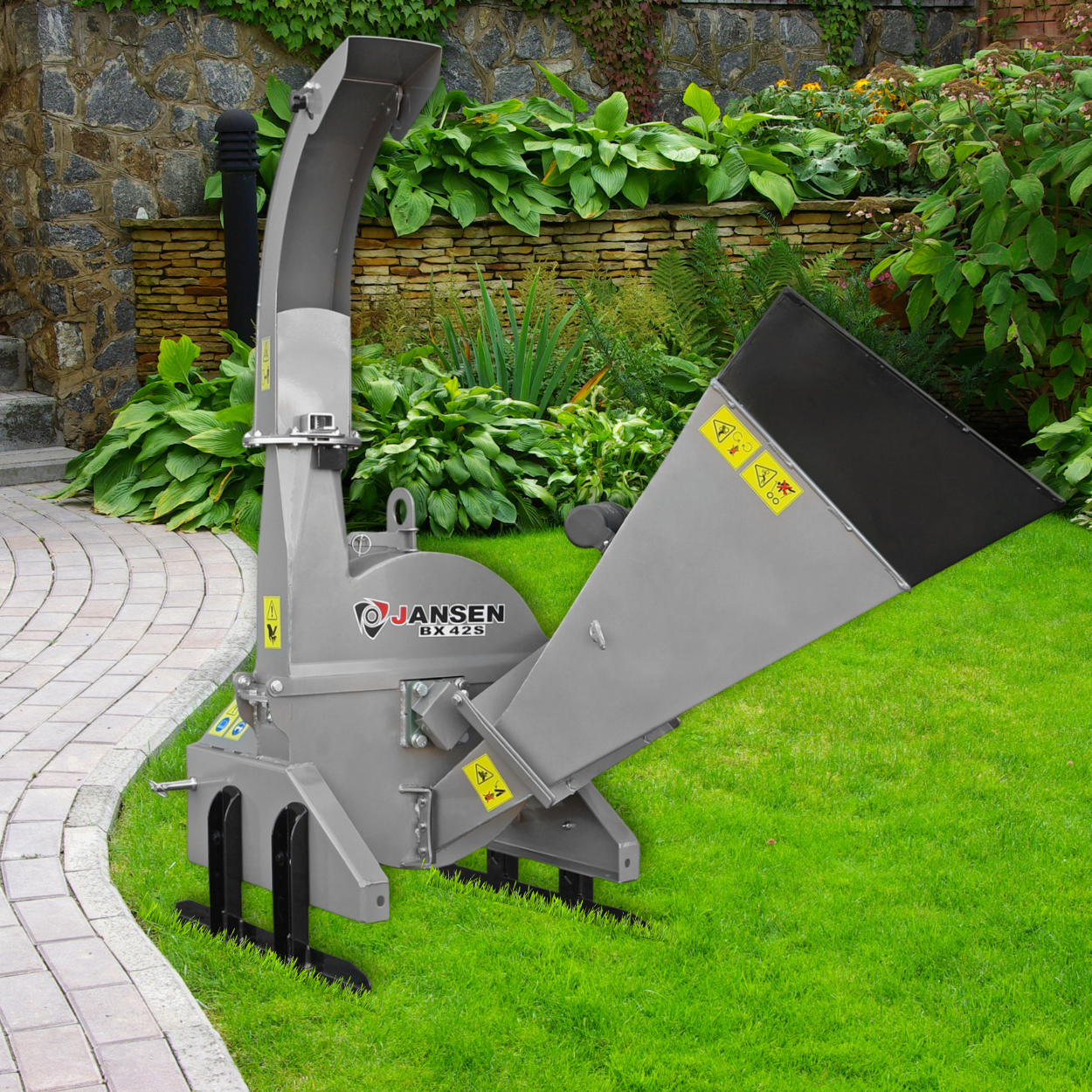 Scheibenhäcksler arbeiten mit einer rotierenden Scheibe, auf der Schneidmesser befestigt sind. Sie sind besonders gut für weiches Material geeignet, arbeiten sehr sauber und erzeugen gleichmäßiges Häckselgut – ideal für Kompostierung. Trommelhäcksler hingegen setzen auf rotierende Walzen oder Trommeln mit eingebauten Messern. Sie sind robuster, haben eine höhere Einzugsleistung und kommen besser mit grobem Astmaterial und Hartholz zurecht. Der Jansen BX-42S ist z. B. ein Trommelhäcksler, der durch seinen kräftigen Traktorantrieb auch größere Mengen Häckselgut problemlos bewältigt.