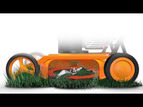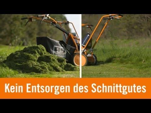Die Mulchglocke in Kombination mit dem spezielle konstruierten Mulchmesser sorgt für ein perfektes Mulchergebnis. Beim Mulchen schneidet das Mulchmesser bis zu 20 cm hohes Gras sauber ab und erzeugt gleichzeitig einen Luftstrom der das Schnittgut gleichmäßig in der Mulchglocke verwirbelt. Die Grashalme werden durch die Verwirbelung mehrmals durch das mit mehreren Schnittkanten versehene Mulchmesser zerkleinert. Die feinen Mulchpartikel düngen den Rasen optimal und schützen ihn vor schneller Austrocknung. Sparen Sie bis zu 30% Zeit im Vergleich zu Fangsackmäher.