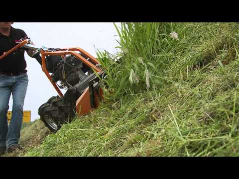 Mähen und Zerfasern in einem Schritt. Ausgerüstet mit einem Kreuzmessersystem schneidet und zerkleinert der AS 63 4T B&S problemlos hohes Gras mit leichtem Gestrüpp bis zu 90 cm. Leistung liefert der zuverlässige Briggs & Stratton 850 E I/C Motor mit einer Maximalleistung von 5,5 PS. Wird ein Hindernis übersehen, bietet die durch eine Messerkupplung getrennte Motor- und Messerwelle einen hohen Motorschutz. Der stufenlose Variomatic-Antrieb ermöglicht Geschwindigkeiten von 2,0 – 4,0 km/h und ist während der Fahrt einstellbar. Pro Stunde können mit dem AS 63 4T B&S, Schnittbreite 61 cm, bis zu 2.300 m²/h gemäht werden. Durch das Reduktionsgetriebe im Antrieb mit einem Übersetzungsverhältnis von 1:13,44 verfügt die Maschine über eine sehr hohe Antriebskraft. Bei Bergabfahrten bremst sich der Wiesenmäher selbstständig und behält an Steigungen die eingestellte Geschwindigkeit bei. Geeignet ist das Gerät für leichte und mittlere Hanglagen. Die Differenzialsperre, die bei aktiviertem Fahrantrieb permanent und zu 100 % gesperrt ist, sorgt zusammen mit den arretierbaren Vorderrädern sichere Geradeausfahrt quer zum Hang.