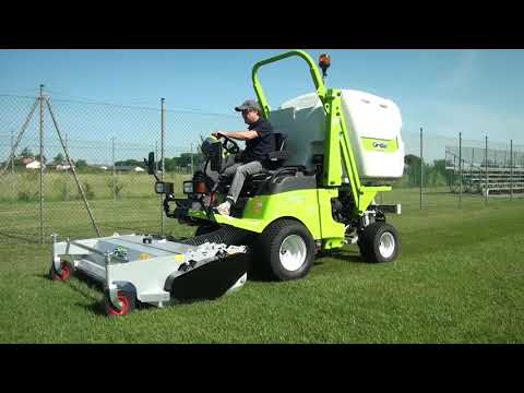 | Serienmäßiges Zubehör | Automatisches Abschalten der Messer und der Turbine bei vollem Grasbehälter. Hydraulische Anhebung und Entleerung des Grasbehälters. Beleuchtungs- und Blinklichtkit |
