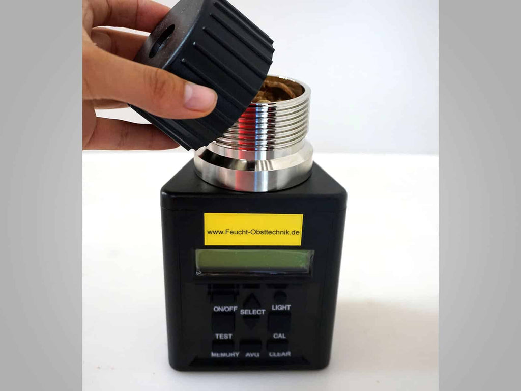 Danach werden die Schalen- und Kernstücken als Probe in die Messkammer gegeben. Der Deckel wird verschlossen und in wenigen Sekunden wird der Feuchtigkeitsgehalt bestimmt. Für ein sehr genaues und repräsentatives Messergebnis sollte der Messvorgang 3-mal wiederholt werden. Das Feuchtigkeitsmessgerät kann für Nüsse und Getreidearten verwendet werden.