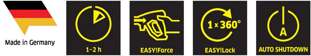 Endlich ermüdungsfrei arbeiten: die EASY!Force-Hochdruckpistole. EASY!Lock-Schnellverschlüsse: langlebig und robust. Und 5-mal schneller als geschraubt. |