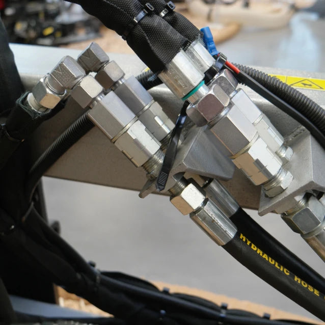 Dank der Umrüstung über das integrierte Ventil, wird die Steuerung der Astsäge deutlich vereinfacht. Die bisher nötige Verbindung mit langen Hydraulikleitungen gehört damit der Vergangenheit an – für ein aufgeräumtes Arbeitsumfeld und maximale Flexibilität bei den Trägerfahrzeugen. Und das mit nur 2 doppelt wirkenden Steuerkreisen!