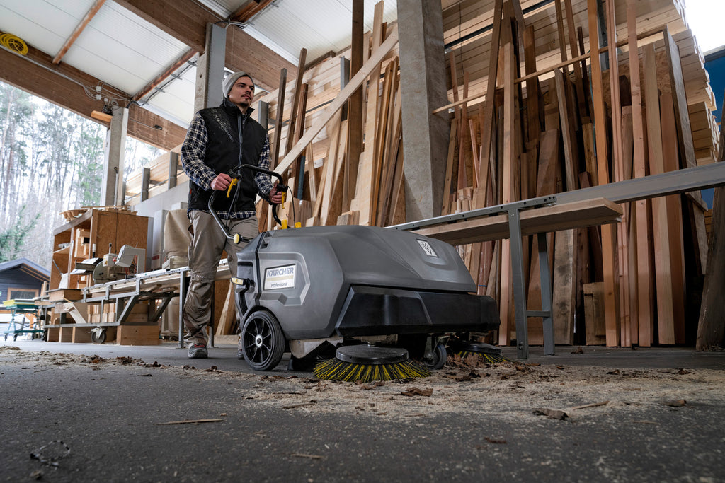 Die kompakt designte Industrie-Nachläufer-Kehrmaschine KM 85/50 W Bp Pack 2SB berzeugt mit hervorragender Ausstattung ab Werk. So wird die Maschine beispielsweise serienmäßig mit Scheibenbremse, Batterie und zugehörigem Ladegerät geliefert. Der große Flachfaltenfilter mit höchst effektiver Abreinigung mittels Dual-Abstreifer erlaubt nahezu staubfreies Arbeiten, während die pendelnd gelagerte Kehrwalze auch bei ungünstigen Bodenverhältnissen und großen Schmutzmengen ausgezeichnete Reinigungsergebnisse ermöglicht. Überhaupt profitieren Anwender von dem sehr komfortablen und intuitiven Bedienkonzept mit Vorwärts- und Rückwärtsantrieb durch simples Drücken oder Ziehen des Schubbügels sowie sinnvollen Details wie der Kärcher Home-Base zur Mitnahme weiterer Reinigungsutensilien. Die robuste Maschine mit ausweichendem Seitenbesen und doppelwandigen Rahmen eignet sich hervorragend für harte Einsätze. Auch der einfache, werkzeuglose Wechsel von Hauptkehrwalze und Filter sowie die hohe Flächenleistung von bis zu 4725 m²/h (mit optionalen, linken Seitenbesen) erfüllen die hohen Anforderungen im industriellen Umfeld.