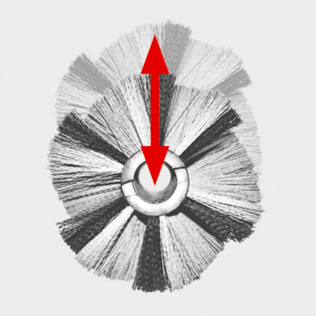 Die pendelnd gelagerte Hauptkehrwalze sorgt für eine ausgezeichnete Schmutzaufnahme selbst auf unebenen Böden. Eine Verschleißnachstellung ist nicht erforderlich, was den Aufwand reduziert und die Reinigung effizient und schnell macht. |
