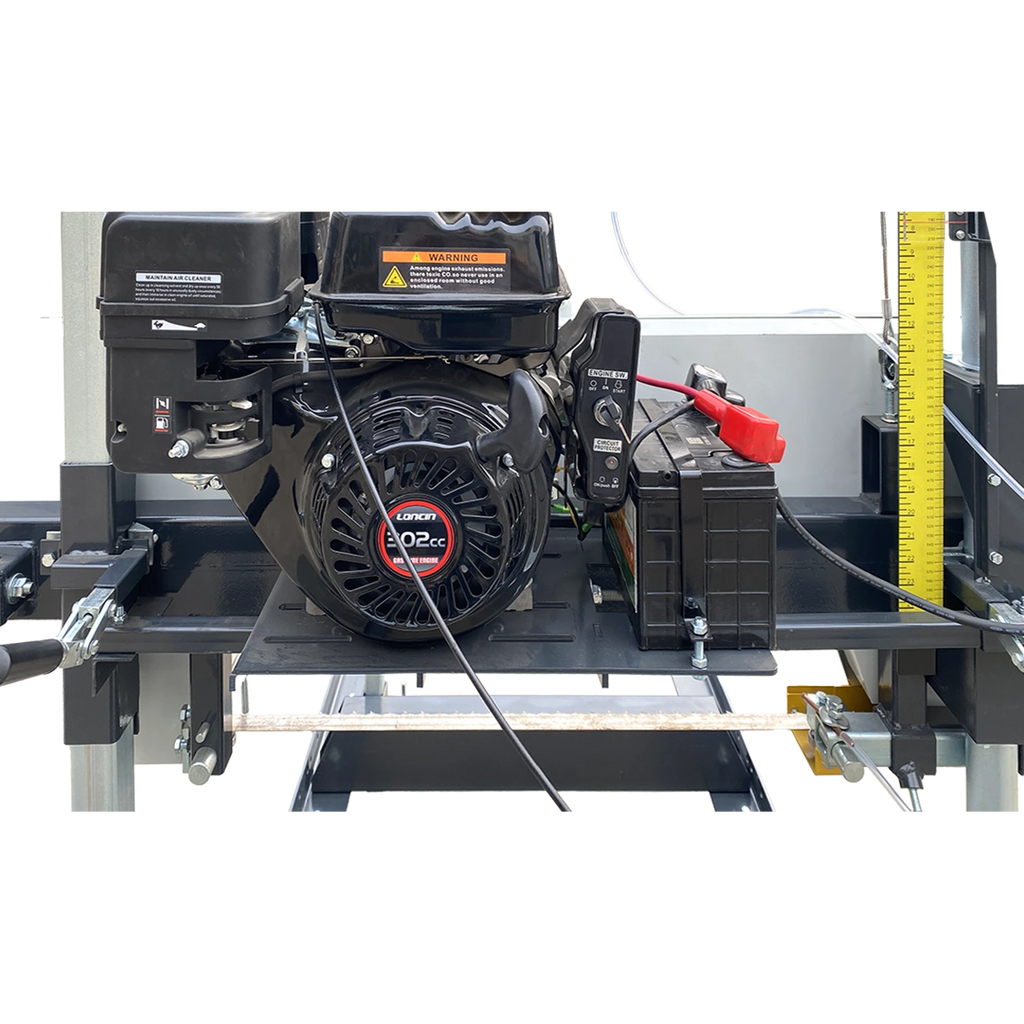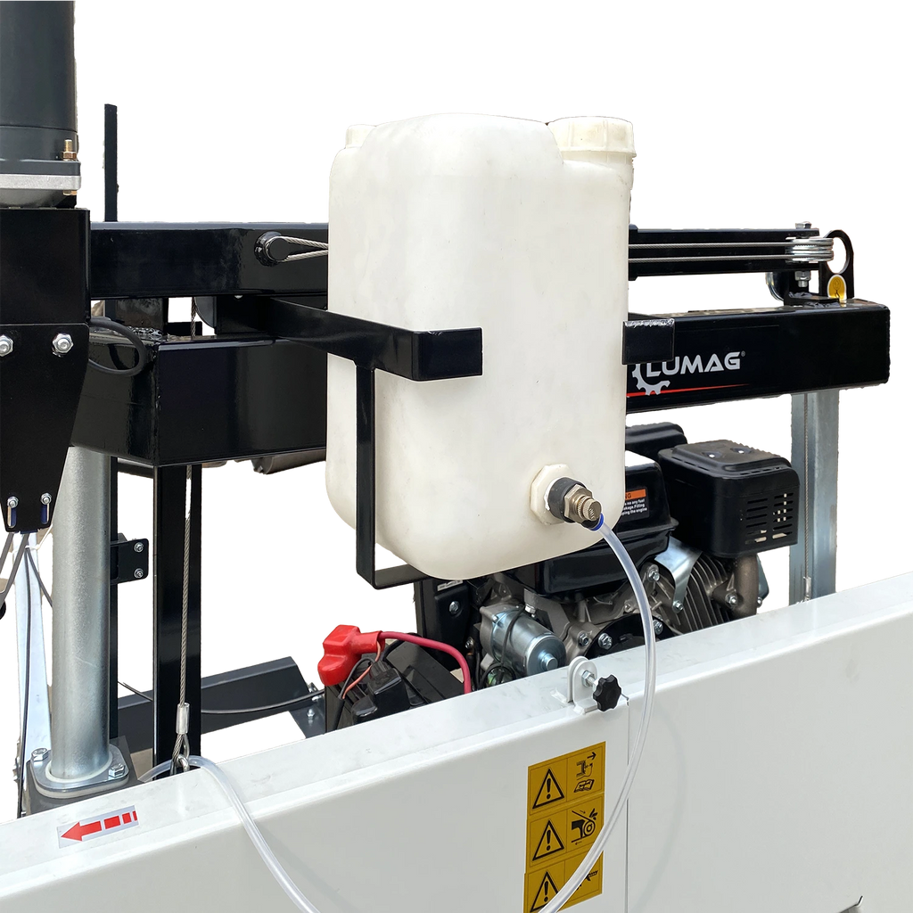 Die solide LUMAG Blockbandsäge ist mit einem kraftvollen Benzinmotor ausgestattet. Die Maschine ist durch den ruhigen Lauf der Antriebsräder ideal geeignet für präzises Sägen von weichen, harten und trockenen Hölzern. Eine robuste und schwingungsfreie Stahlkonstruktion sorgt für eine gute Schnittgenauigkeit, selbst bei großen und schweren Werkstücken.