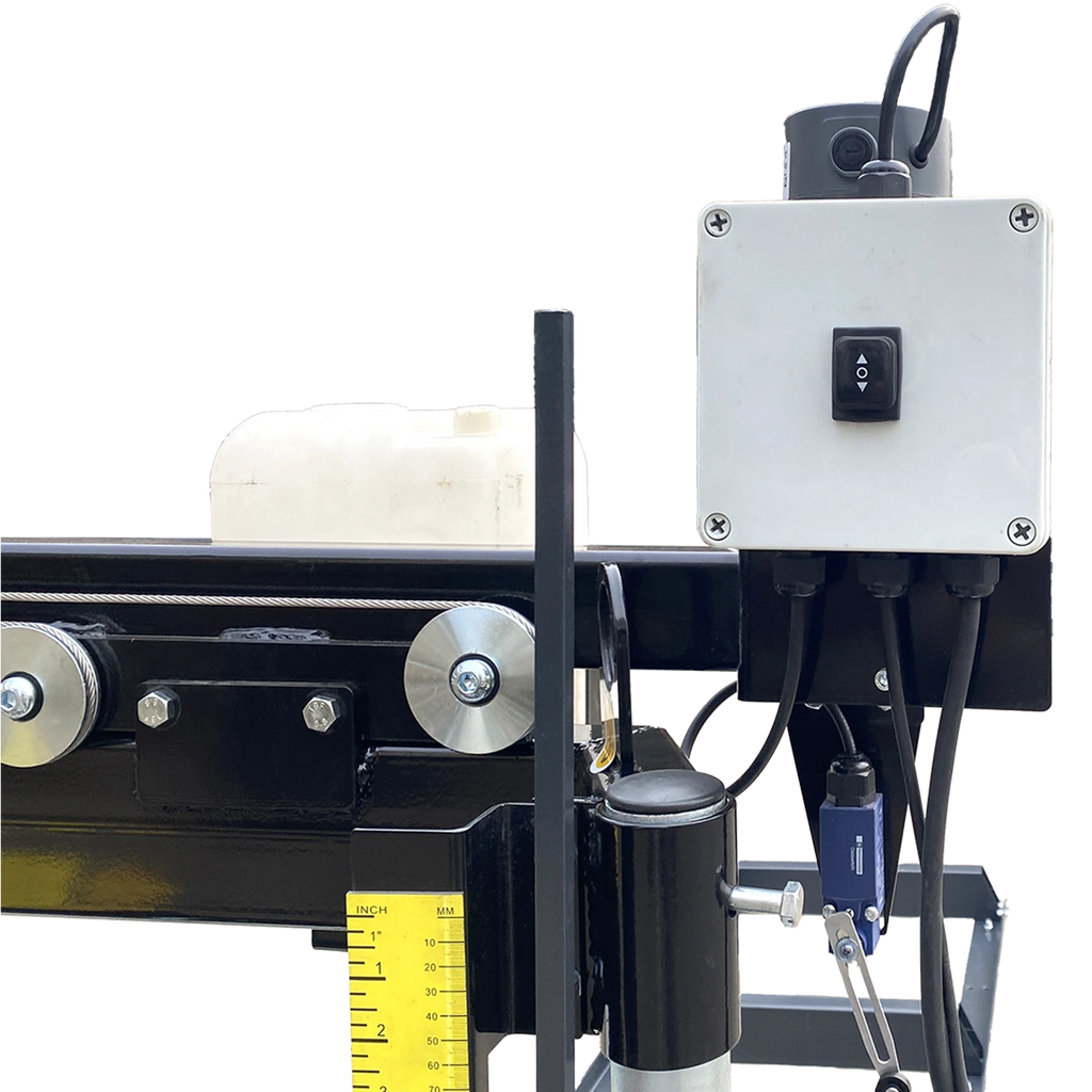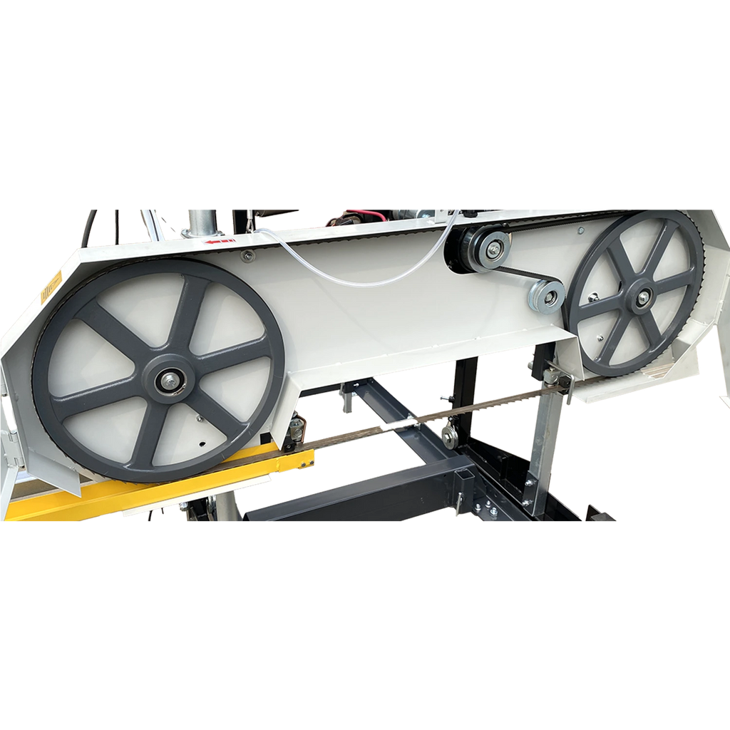 Serienmäßig wird die BSW76GL PRO mit einer 5-Meter-Rollbahn geliefert, die sich bei Bedarf flexibel durch Rollbahnverlängerungen erweitern lässt. Damit bleibt das Sägewerk anpassungsfähig für unterschiedlichste Stammgrößen und Projekte. Für zusätzlichen Komfort sorgt die motorische Höheneinstellung, die das Einstellen der gewünschten Schnitthöhe besonders präzise und mühelos macht. Die integrierte Kühlmitteleinrichtung mit 10-Liter-Behälter und Dosierhahn gewährleistet eine optimale Sägebandkühlung und trägt zu einer langen Standzeit des Bands bei.