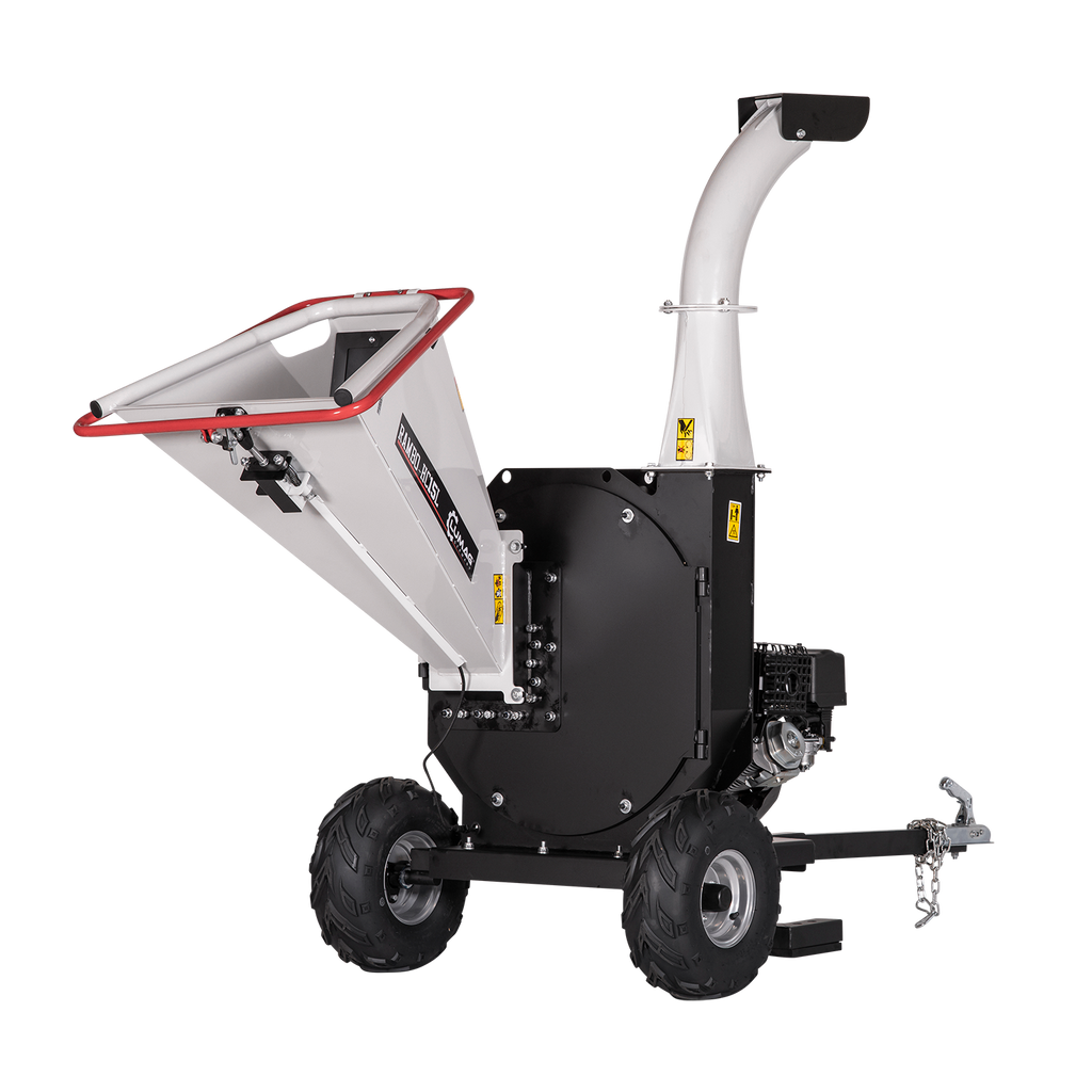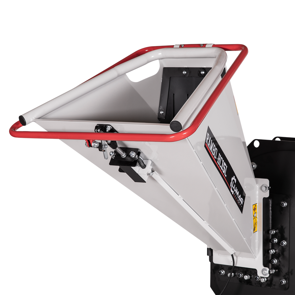 Den Auswurfschacht kannst du um 120° drehen. Besonders praktisch ist auch der Einfülltrichter: Du kannst ihn zum Reinigen der Messerscheibe einfach zur Seite klappen. Der RAMBO-HC15L ist ein leistungsstarkes Gerät, das sich ideal für den professionellen Einsatz eignet.