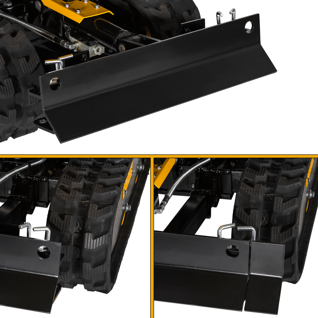 Für maximale Sicherheit und Komfort ist der Bedienbereich mit einem rutsch- und schlagfesten Gummibelag ausgestattet. Zusätzlich sorgen der bequeme Sitz mit Sicherheitsgurt sowie ein robuster Überrollbügel für zuverlässigen Schutz während des gesamten Einsatzes. Seine schmale Bauweise und die hydraulisch verstellbare Spurweite von 730 bis 870 mm ermöglichen es dem MB-850, auch schmale Tore und Zugänge problemlos zu passieren. Gleichzeitig gewährleistet die verstellbare Spurweite einen stabilen Stand am Einsatzort und damit ein sicheres und effizientes Arbeiten.