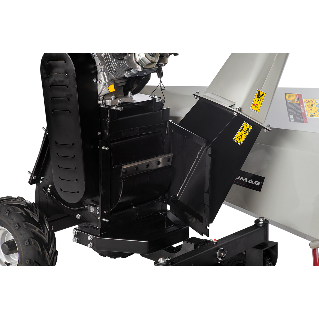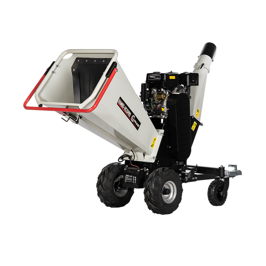 Der Lumag Benzin-Trommelhäcksler RAMBO-HC15PRO ist ein leistungsstarker Helfer für all deine Häckselarbeiten. Mühelos bewältigst du damit auch sehr dickes Astwerk mit einem Durchmesser von bis zu 150 mm. Der große Einfülltrichter sorgt für eine komfortable Bedienung und dank des integrierten Fahrwerks mit Pendelachse und Stollen-Luftbereifung kannst du den Häcksler schnell und einfach umsetzen – selbst in unwegsamem Gelände.
