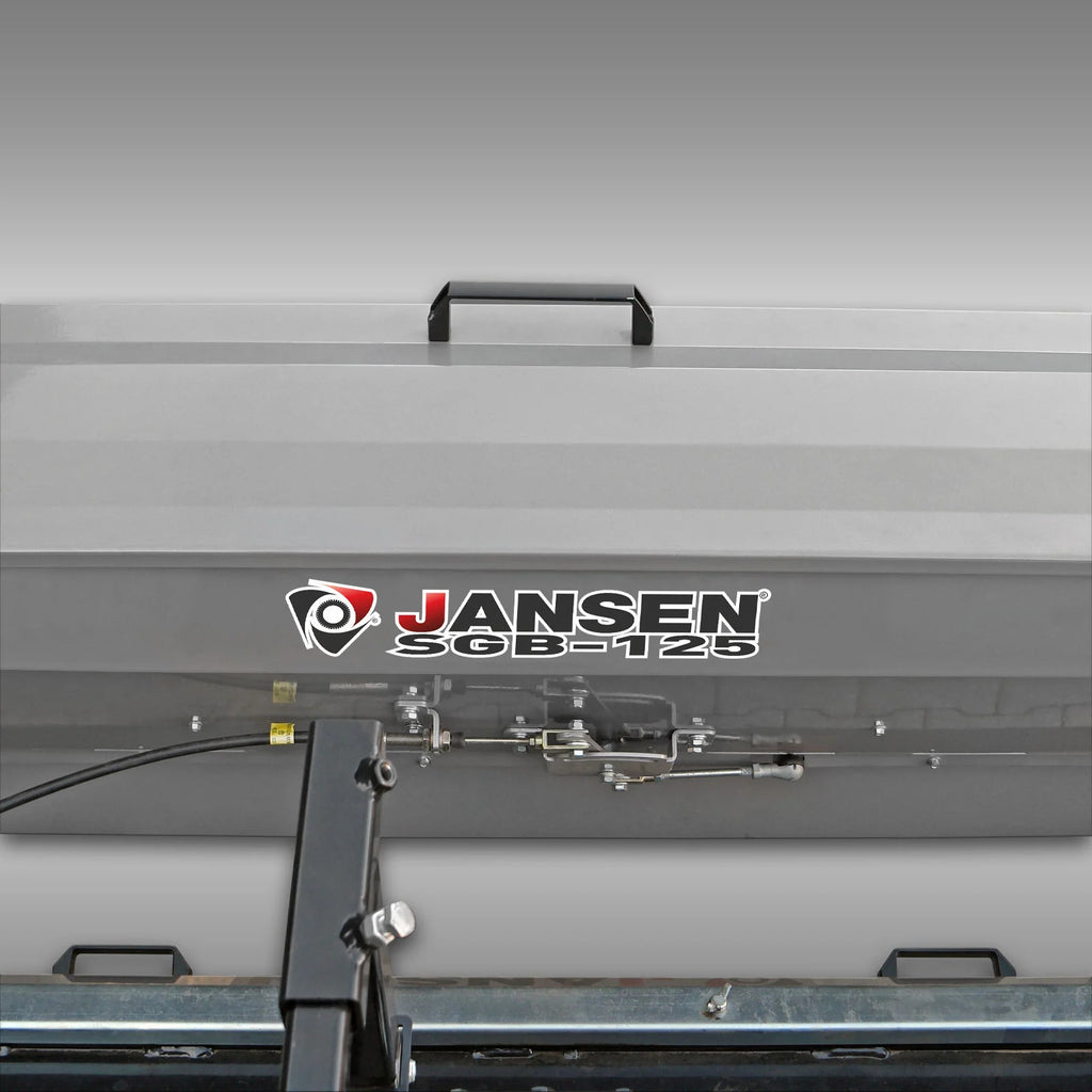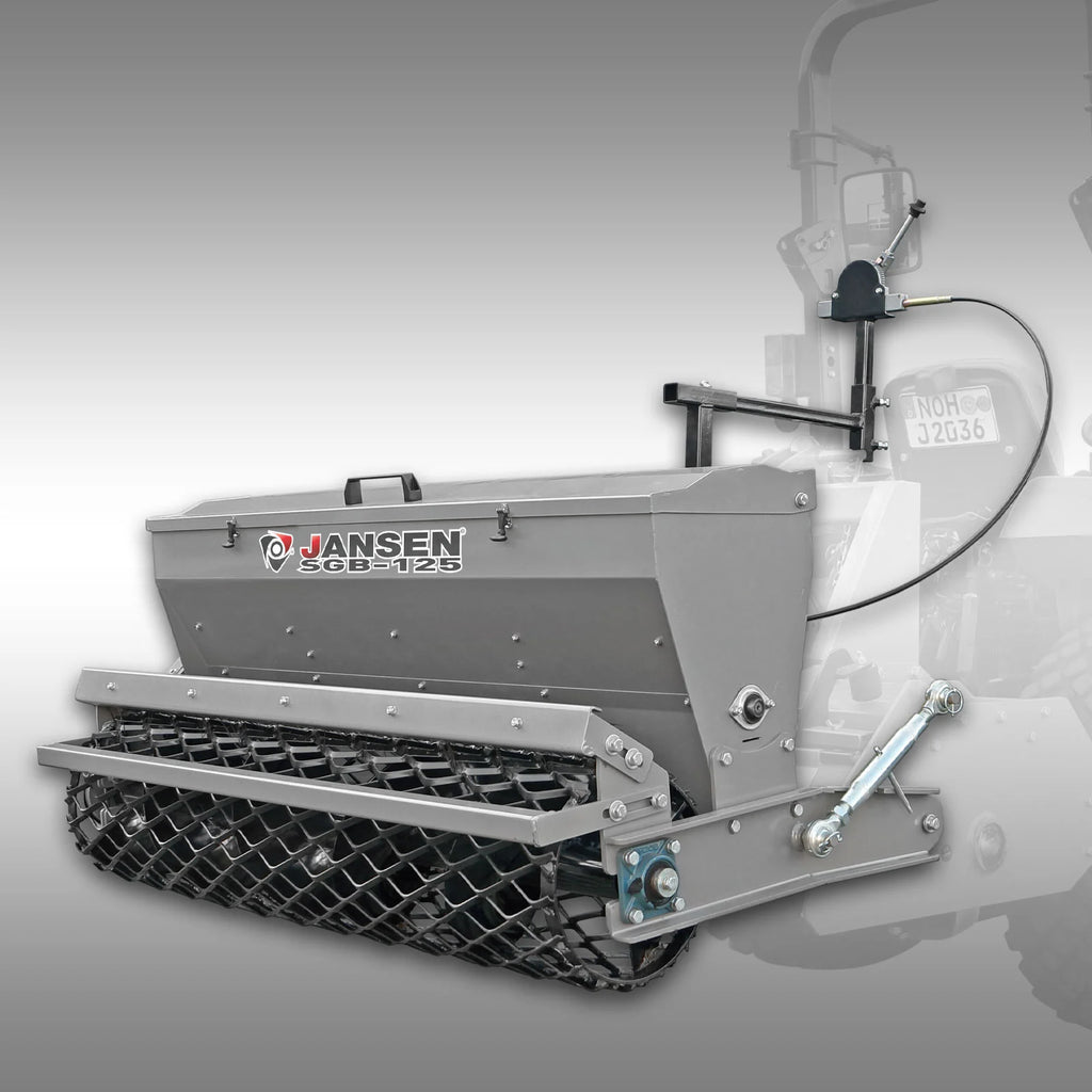 Der JANSEN® SGB-125 Saatgutbehälter ist die ideale Ergänzung für die JANSEN® UKF-Umkehrfräse und ermöglicht das Fräsen, Einebnen und Aussäen in einem einzigen Arbeitsgang. Durch die präzise Saatgutverteilung wird ein gleichmäßiges Ergebnis erzielt – perfekt für Rasensaat, Blühmischungen oder Wildäcker.
