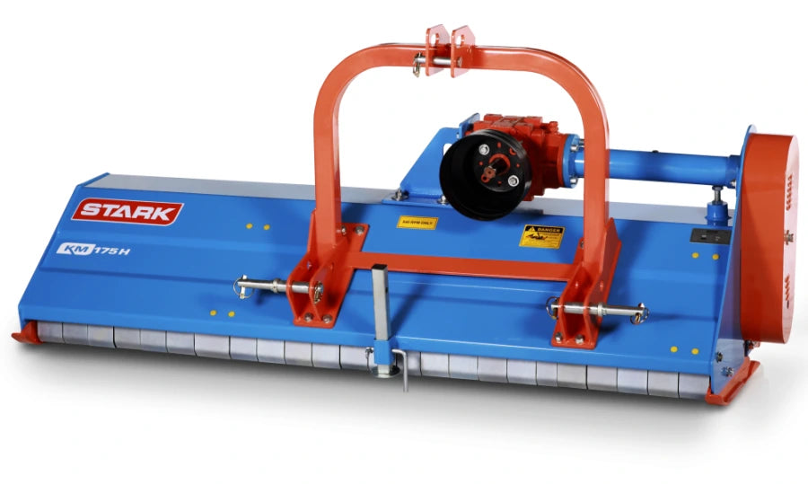 Der Stark Mulcher KM 175 H überzeugt durch seine stabile Bauweise und durchdachte Technik. Der besonders robuste Dreipunktanbau und der 5 mm starke Rahmen machen ihn widerstandsfähig gegen Verwindung und Belastung. Angetrieben wird der Mulcher über eine 540 U/min Zapfwelle mit Freilaufgetriebe und einem langlebigen Riemenantrieb mit drei Keilriemen.