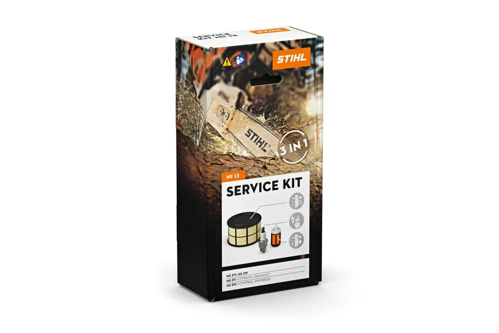 Mit dem Service Kit 13 für STIHL Benzin‑Motorsägen können Sie einfache Wartungsarbeiten an Ihrer Kettensäge selbst durchführen. Durch diese proaktiven und regelmäßigen Standard-Wartungen, wie den Tausch von Luft- und Kraftstofffilter sowie der Zündkerze, erhöhen Sie die Lebensdauer Ihrer Motorsäge. So tragen Sie selbst dazu bei, dass Maschinenkomponenten und Bauteile vor Schmutz und Beschädigung geschützt werden und der Motor Ihrer Kettensäge stets zuverlässig und mit optimaler Leistung arbeitet.
