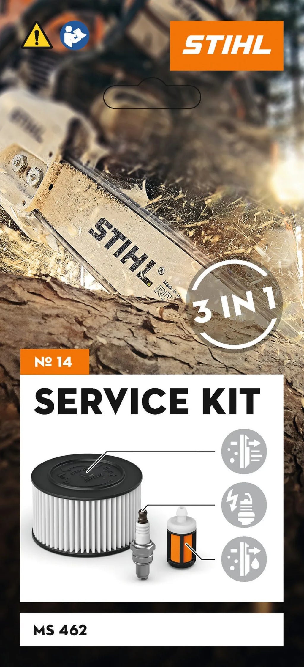 Im STIHL Service Kit 14 für MS 462 erhalten Sie folgende Komponenten für eine Standard-Wartung: