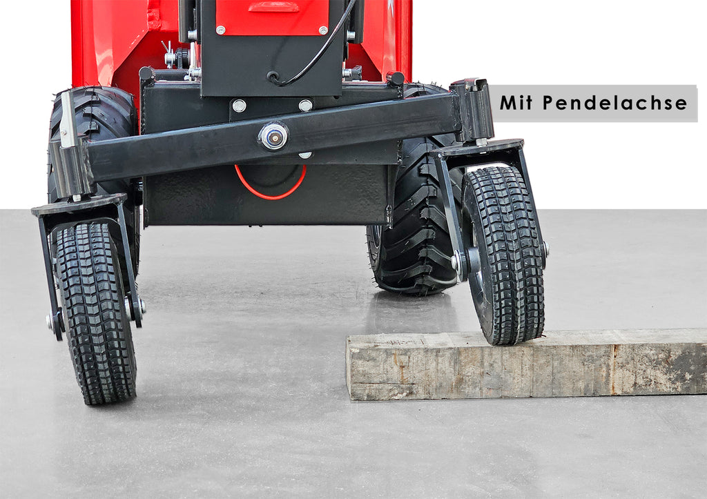 - Pendelachse hinten sorgt für stabilen Lauf und sicheren Transport auf unebenem Gelände